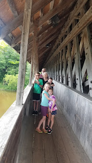 Wednesday we drove out to Frankenmuth. We did our traditional stop at Bronner's where the girls each purchased another Beanie Boo, apparently that's their new obsession. After that we took a walk on a covered bridge and hit up some tourist shops. We also bought some crepes. Penny had been all excited to have one with strawberries and chocolate but when she saw it she did not want it. She is not a fan of tortillas and it really looked like a tortilla. I got a crepe with meat and cheese and it was alright. I think I will always be partial to the ones Tyler makes and the ones me and my mom get at the Broken Yoke.